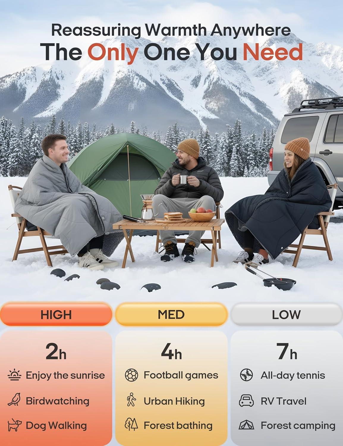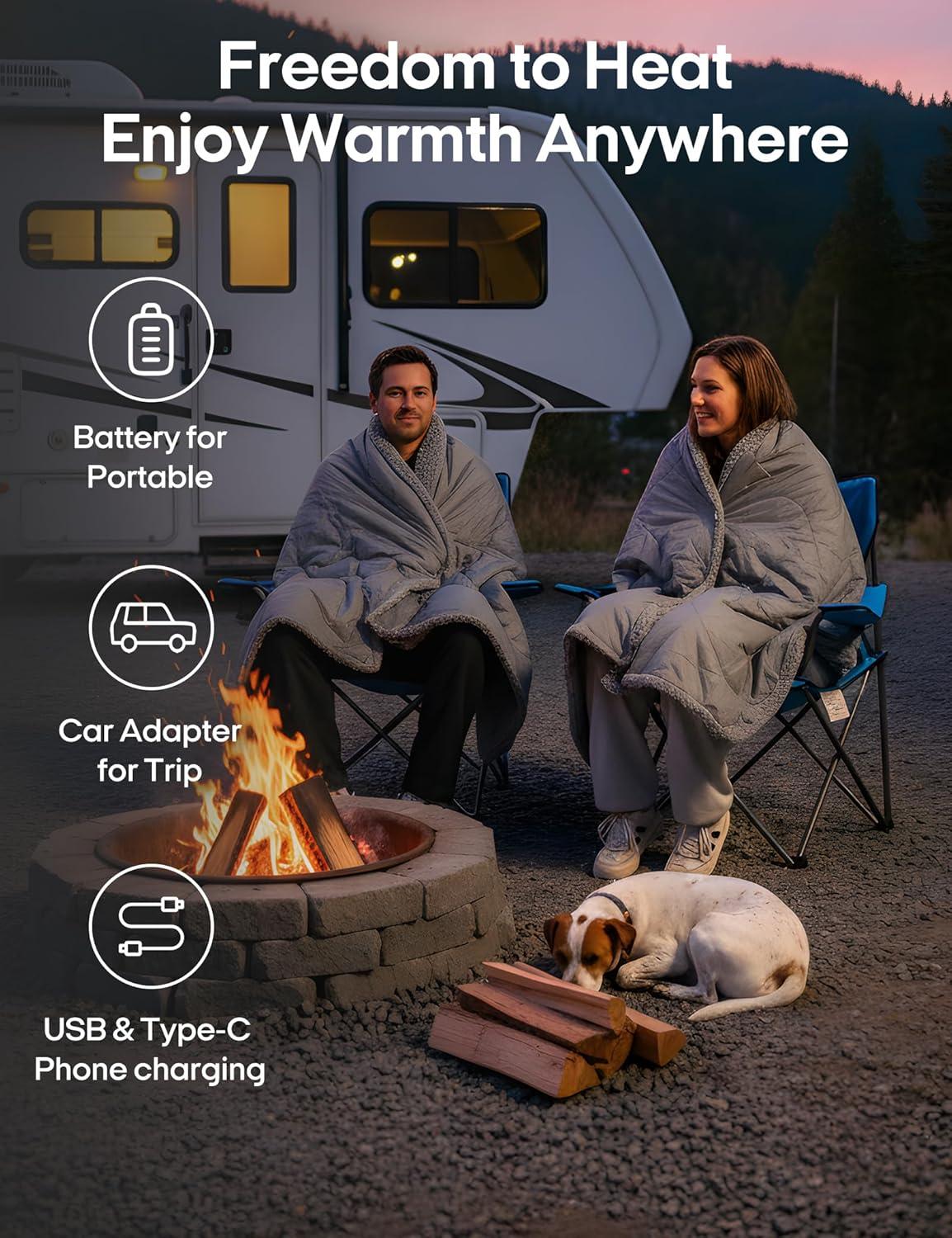 Give the Gift of Warmth: This heated blanket makes a thoughtful gift for your loved ones. Perfect for Christmas, birthdays, or Mother’s Day, it’s an ideal present for those who love comfort and outdoor adventures. Whether you’re a camping enthusiast, a sports event attendee, a fishing lover, or someone who enjoys cozy nights at home, this blanket will keep you warm and comfortable all year round.
