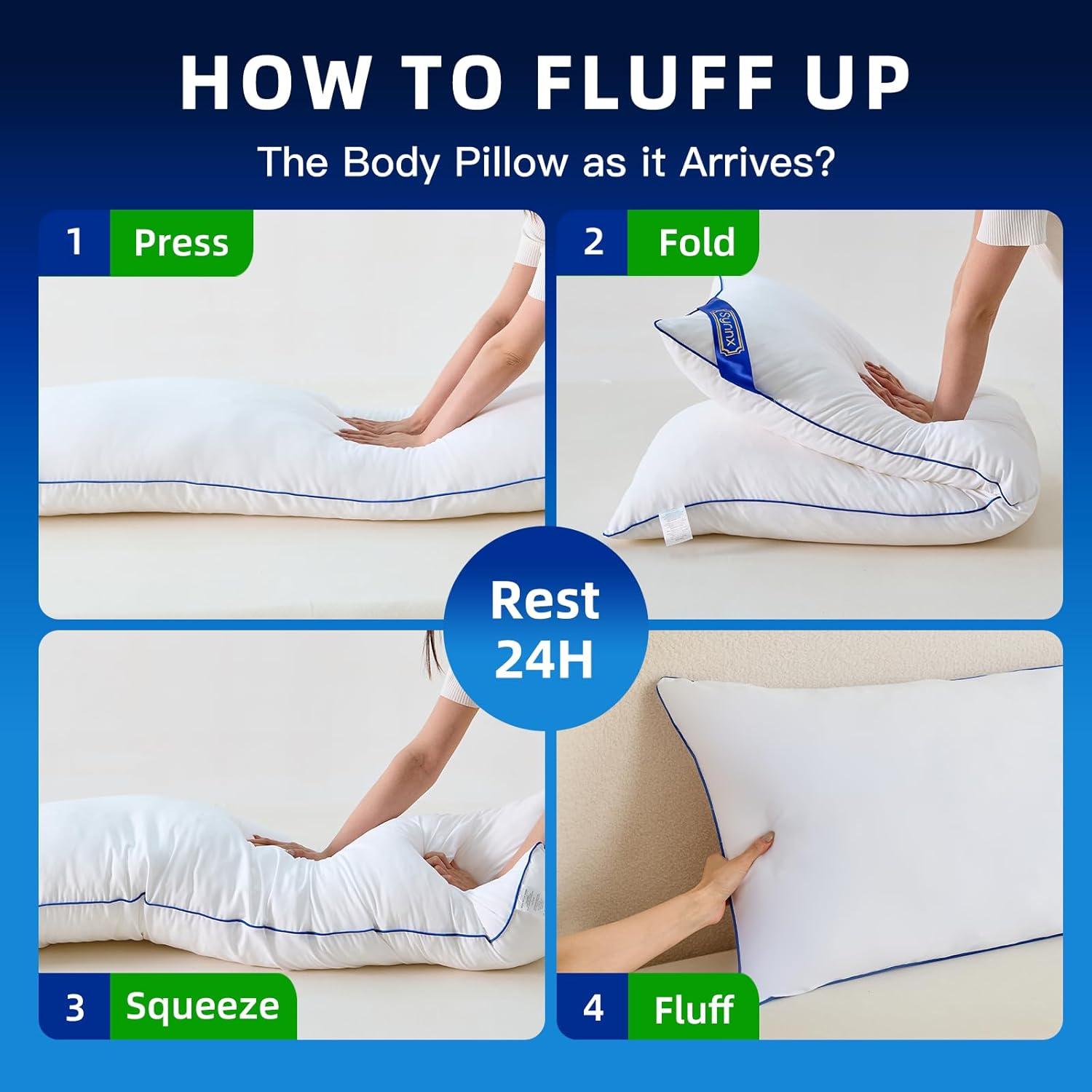 【20×54 Inch: Full-Body Pillow】This 20×54 inch size wraps your entire body perfectly. To cut down on energy waste during shipping, we use vacuum-sealed packaging. After unboxing, just give it a gentle pat, a quick shake, and let it sit for 24 hours—it’ll fluff up completely.