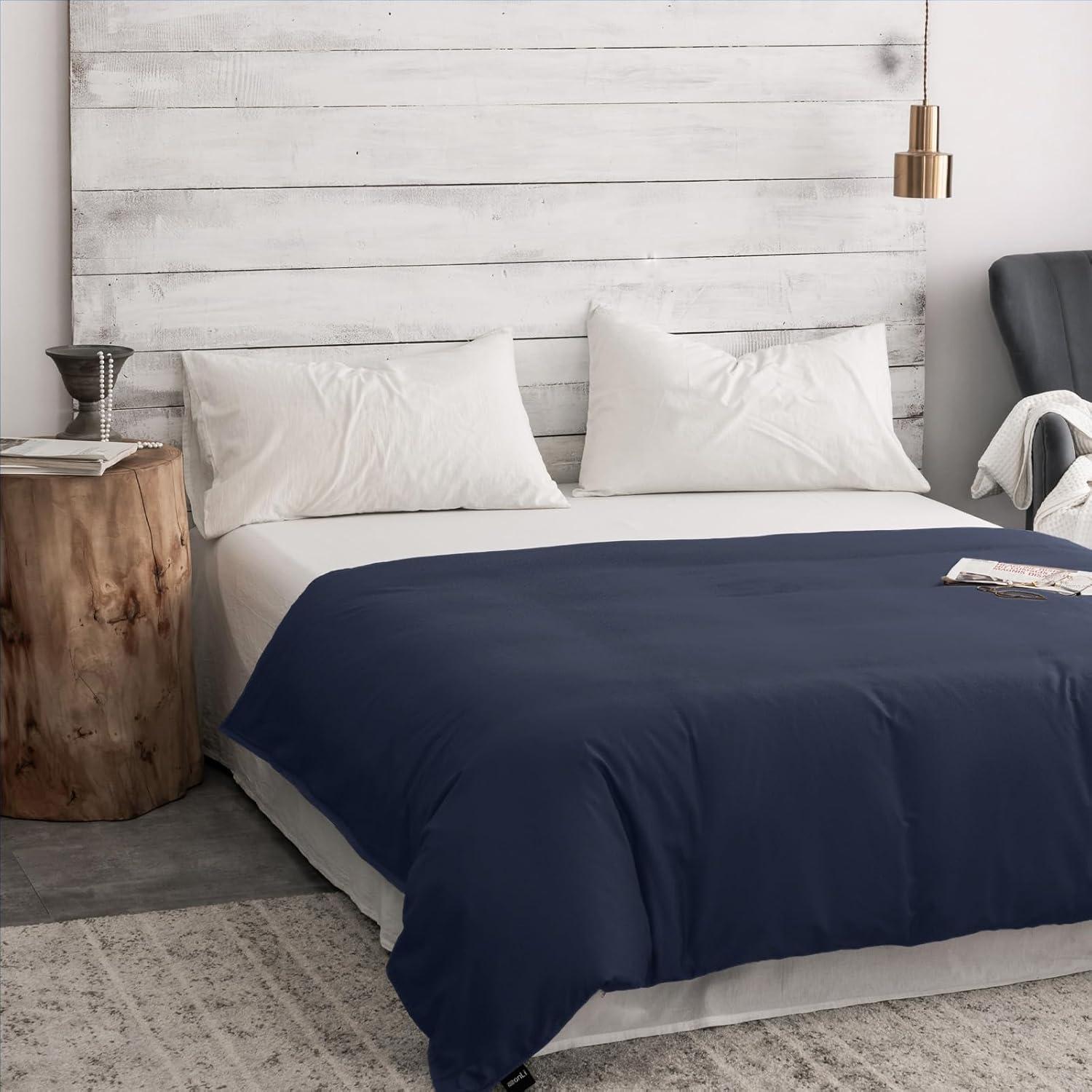 ZonLi Duvet Cover for Weighted Blanket (Grey, 60'' x 80''), Breathable Soft Duvet Cover Queen Size Removable Cooling Comforter Cover for All Season(Navy Blue)