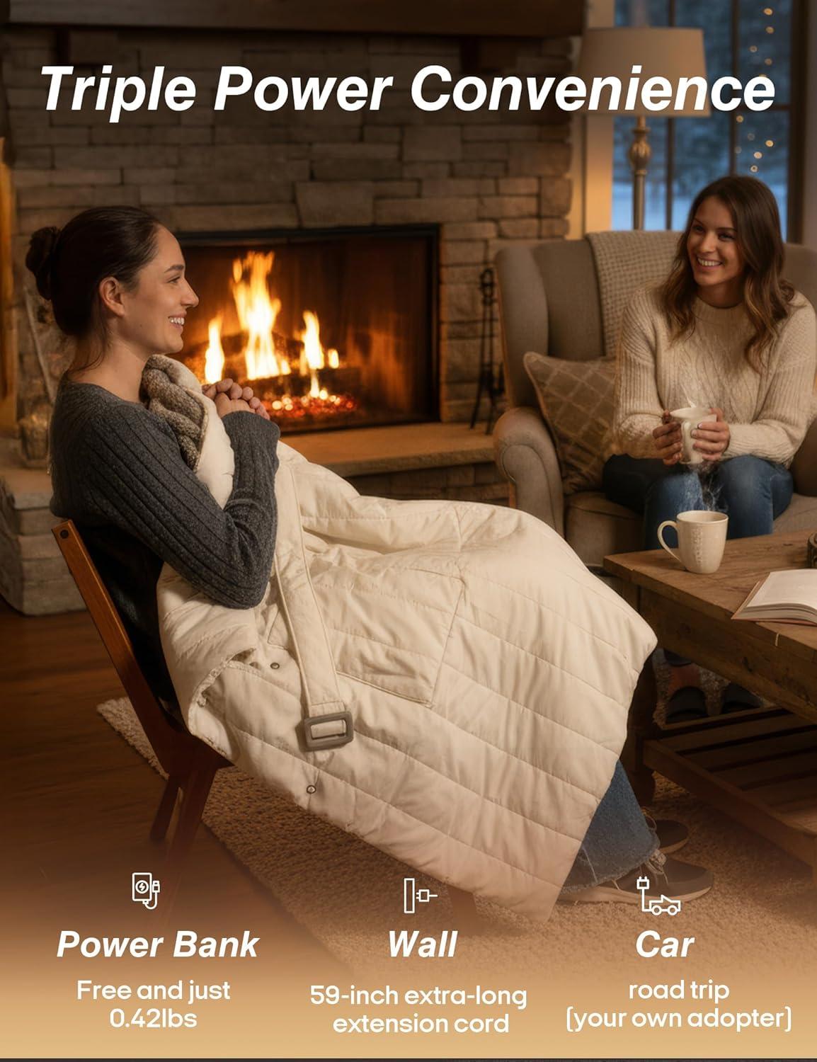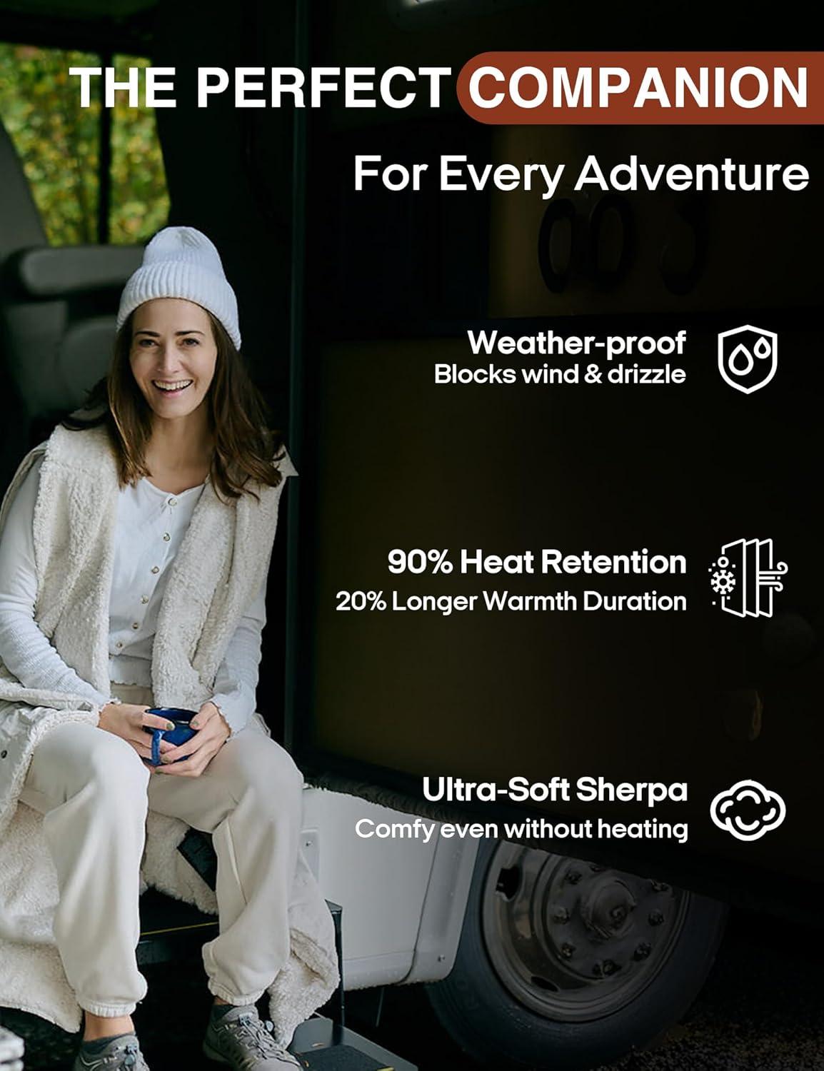 【Overheat Protection & Ideal Gift Choice】:To ensure safety, this rechargeable heated blanket is equipped with a 2-hour automatic shut-off function to prevent overheating. Whether you're camping, attending a sports event, hiking, or watching TV or working indoors, this portable heating blanket is the perfect choice. Adjustable sizes accommodate people of all body types, making it a thoughtful Christmas gift for your family. Can't wait to see their surprised expressions!
