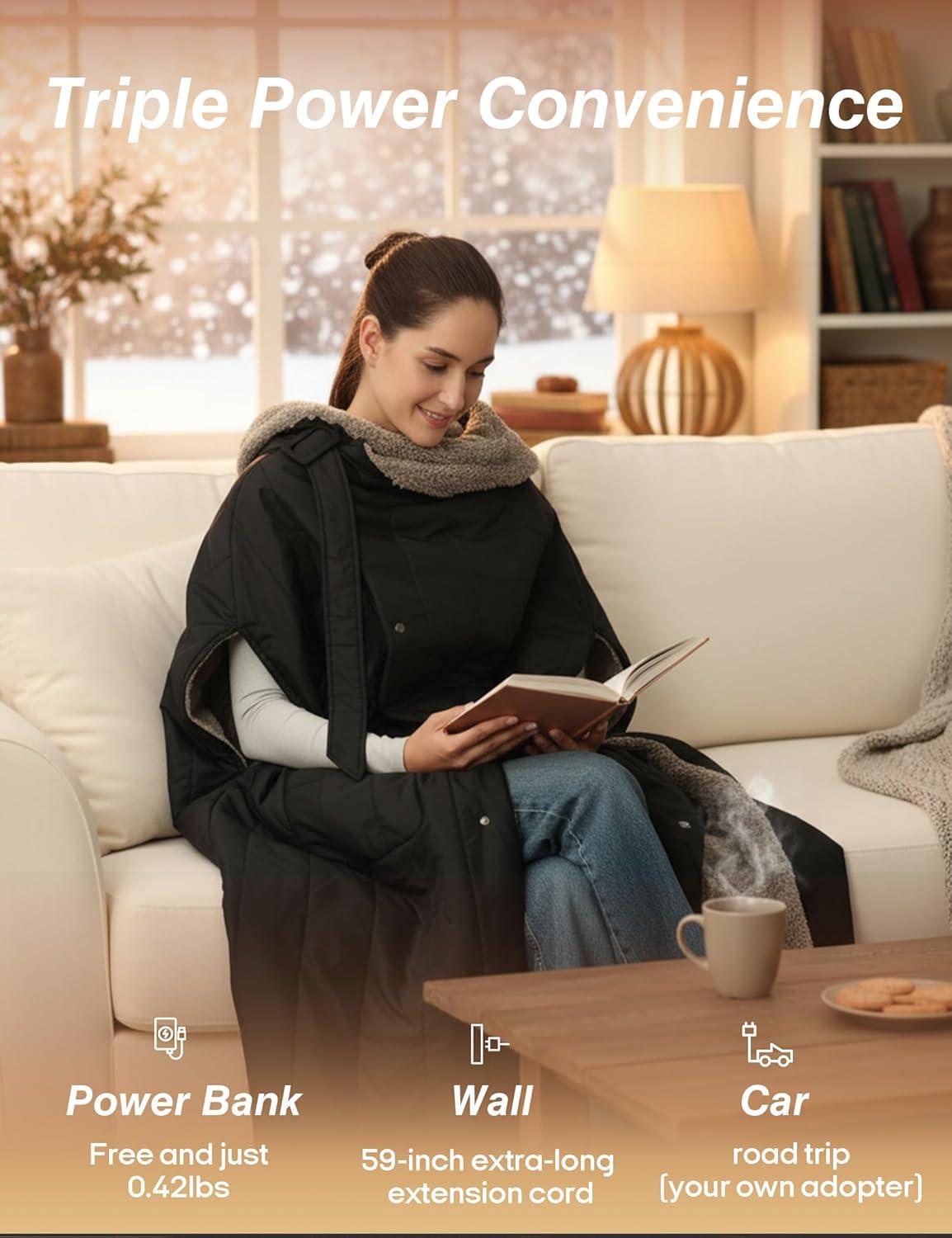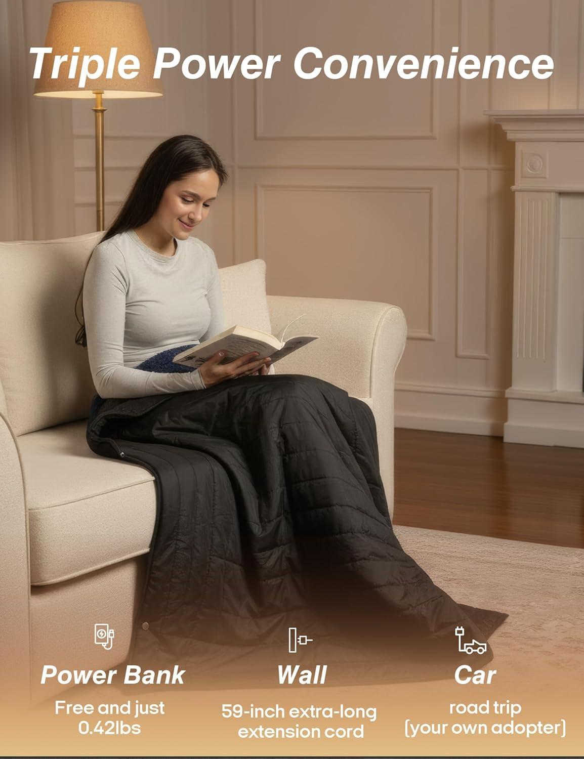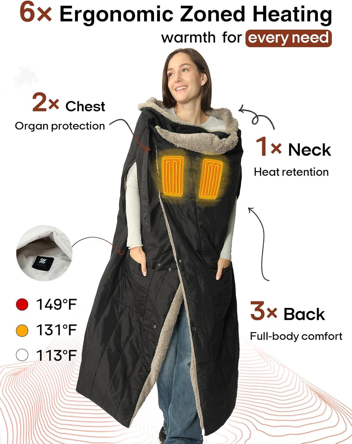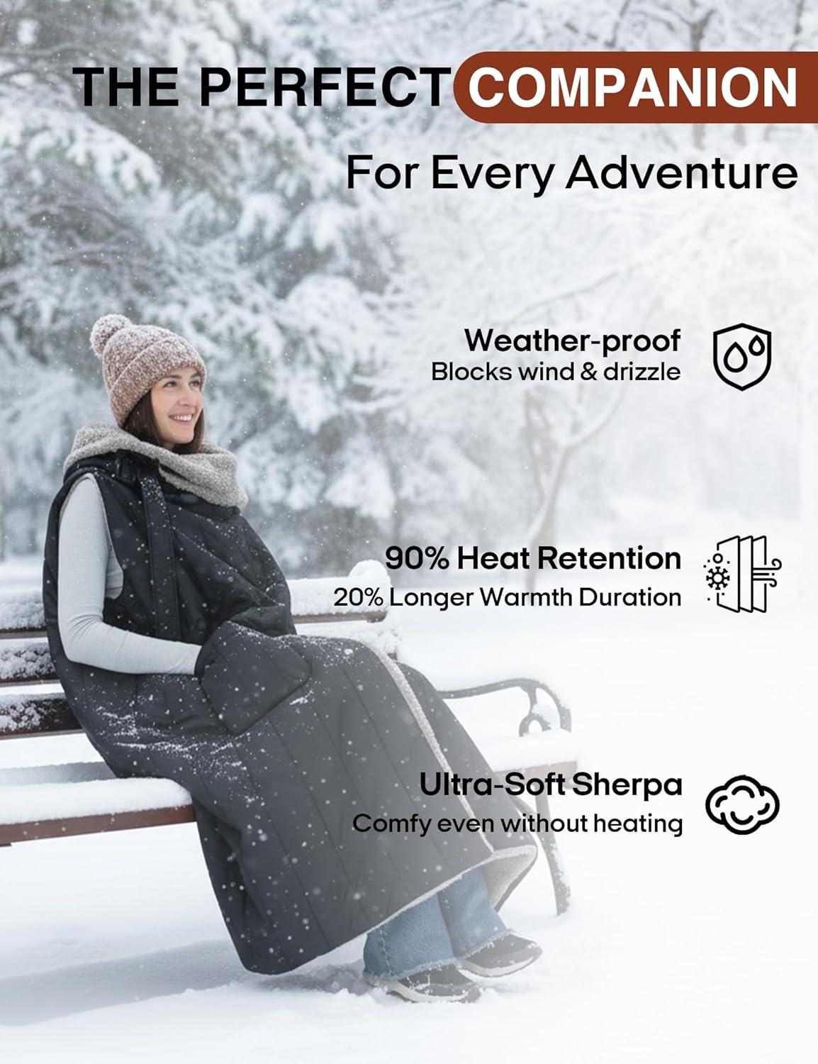 【Overheat Protection & Ideal Gift Choice】:To ensure safety, this rechargeable heated blanket is equipped with a 2-hour automatic shut-off function to prevent overheating. Whether you're camping, attending a sports event, hiking, or watching TV or working indoors, this portable heating blanket is the perfect choice. Adjustable sizes accommodate people of all body types, making it a thoughtful Christmas gift for your family. Can't wait to see their surprised expressions!