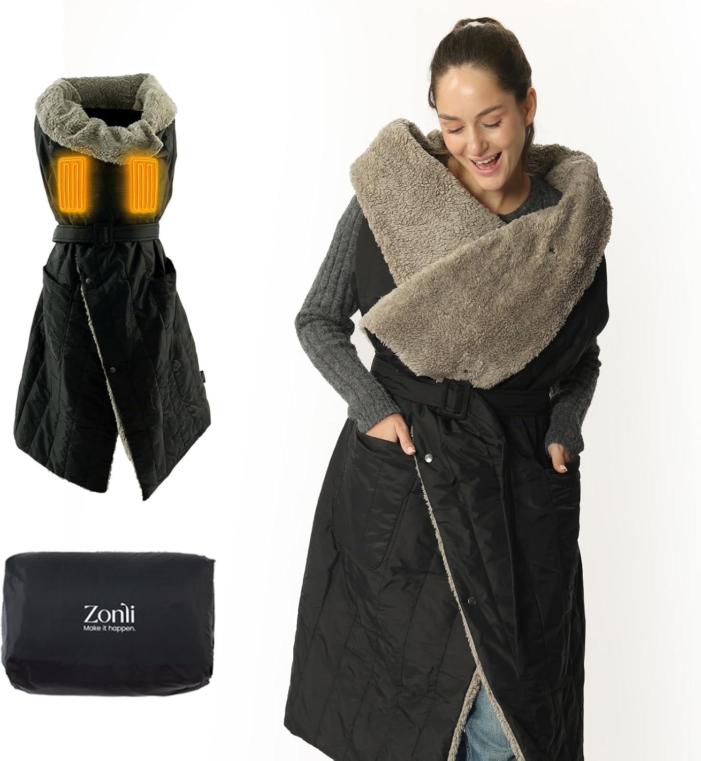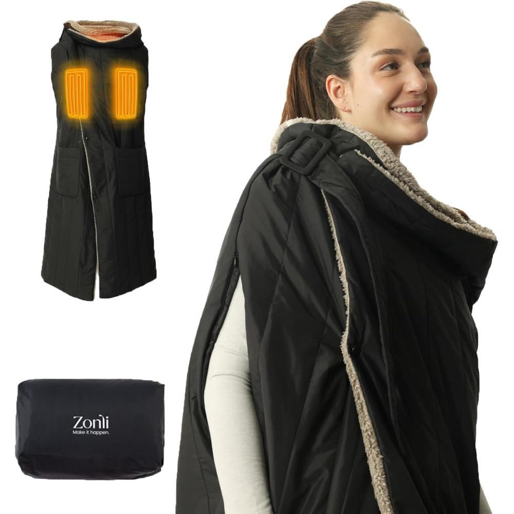 Zonli Heated Blanket Battery Operated for Outdoor Use – Fashionable, Cordless, Portable Electric Blanket with Rechargeable 10000mAh Battery – Wearable Heated Vest for Women,Black(Charcoal Black)