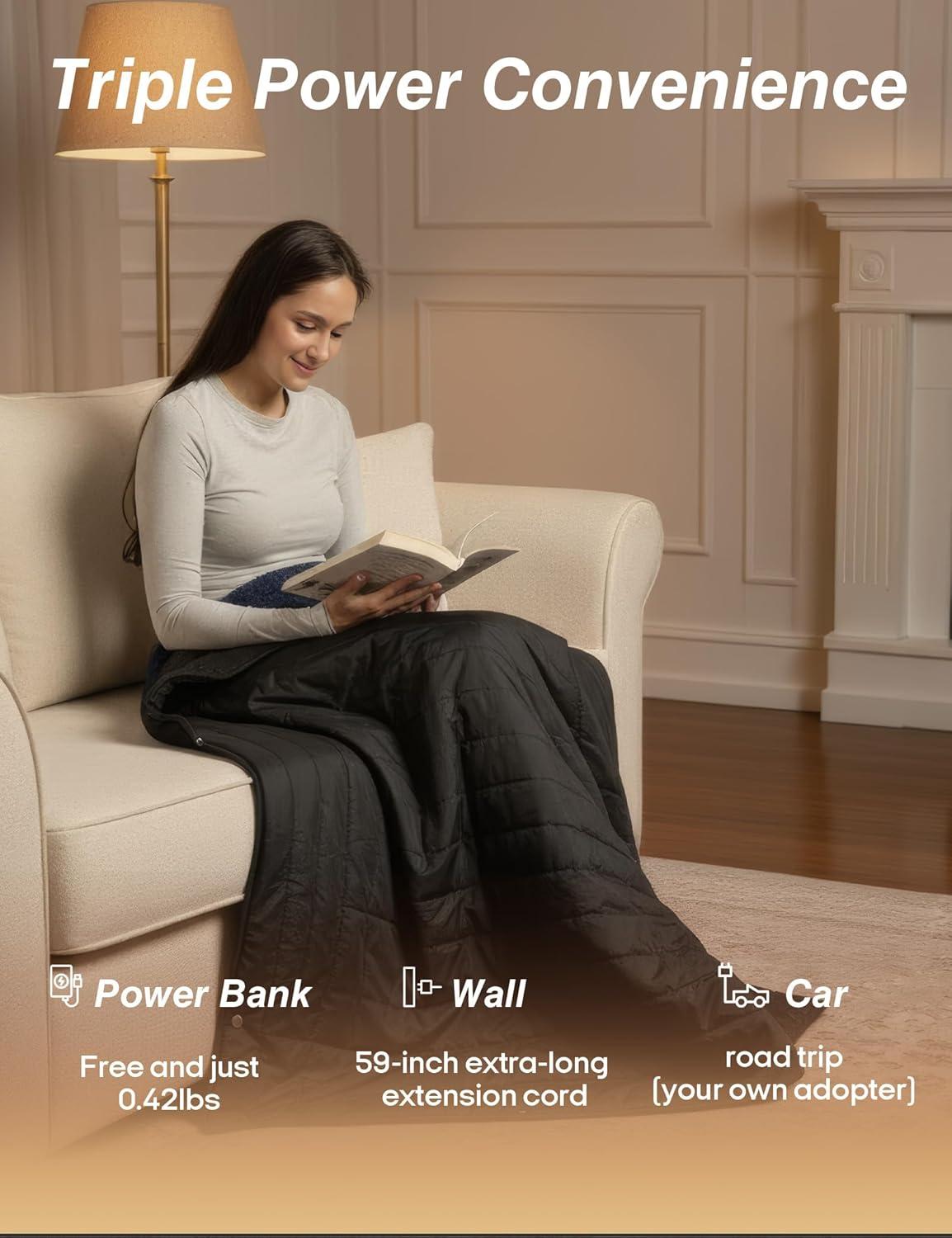 【Overheat Protection & Ideal Gift Choice】:To ensure safety, this rechargeable heated blanket is equipped with a 2-hour automatic shut-off function to prevent overheating. Whether you're camping, attending a sports event, hiking, or watching TV or working indoors, this portable heating blanket is the perfect choice. Adjustable sizes accommodate people of all body types, making it a thoughtful Christmas gift for your family. Can't wait to see their surprised expressions!