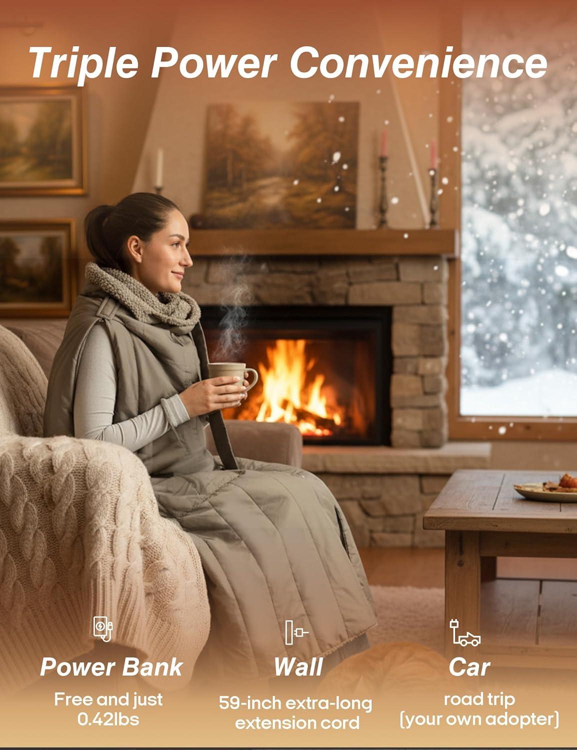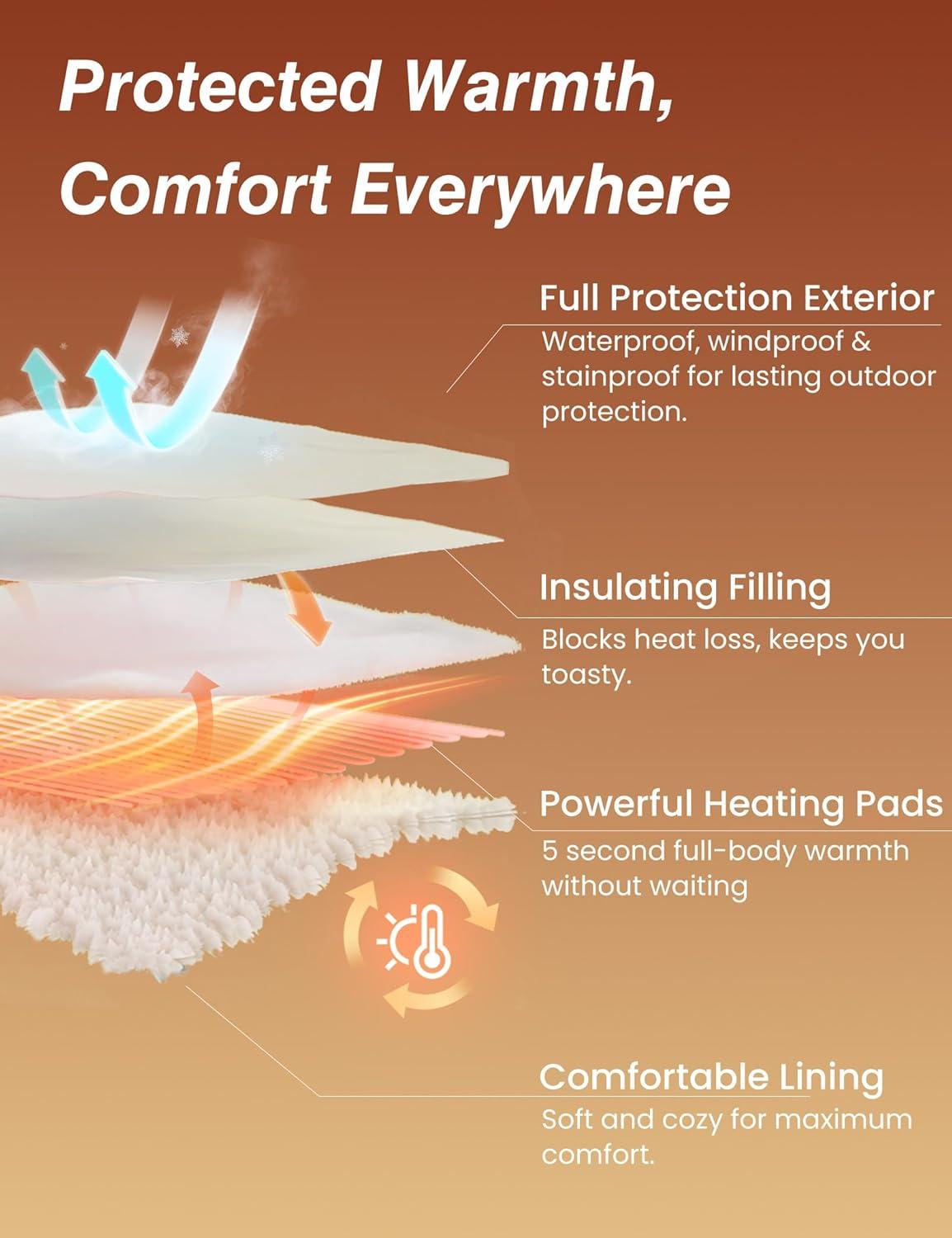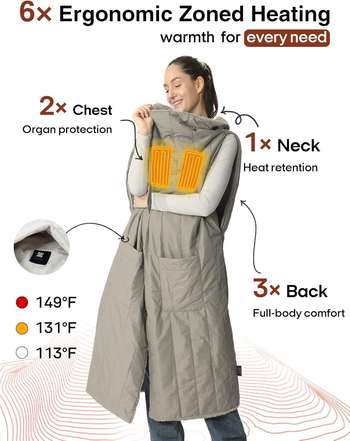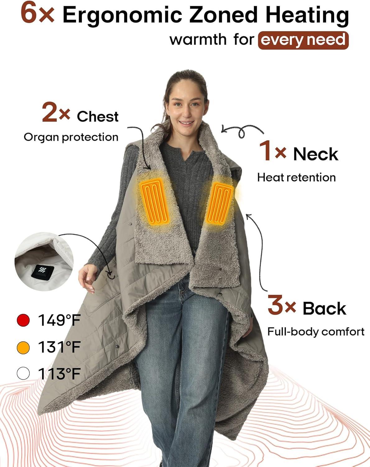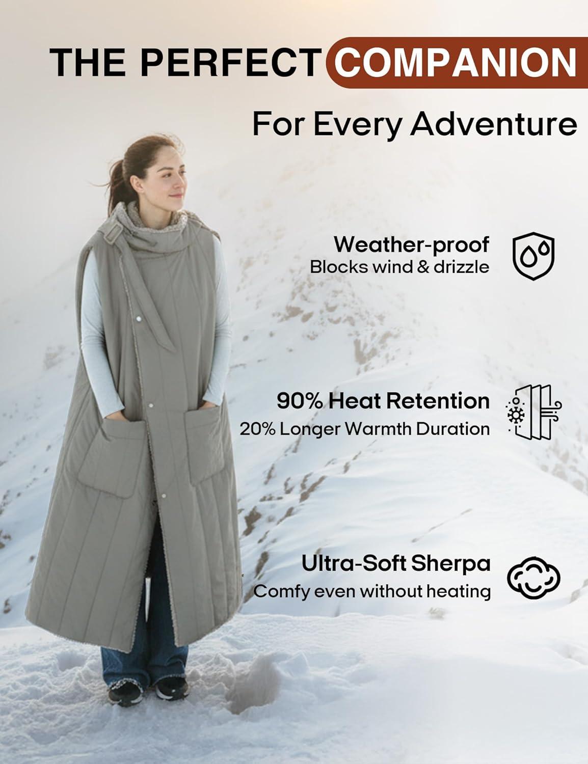 【Overheat Protection & Ideal Gift Choice】:To ensure safety, this rechargeable heated blanket is equipped with a 2-hour automatic shut-off function to prevent overheating. Whether you're camping, attending a sports event, hiking, or watching TV or working indoors, this portable heating blanket is the perfect choice. Adjustable sizes accommodate people of all body types, making it a thoughtful Christmas gift for your family. Can't wait to see their surprised expressions!