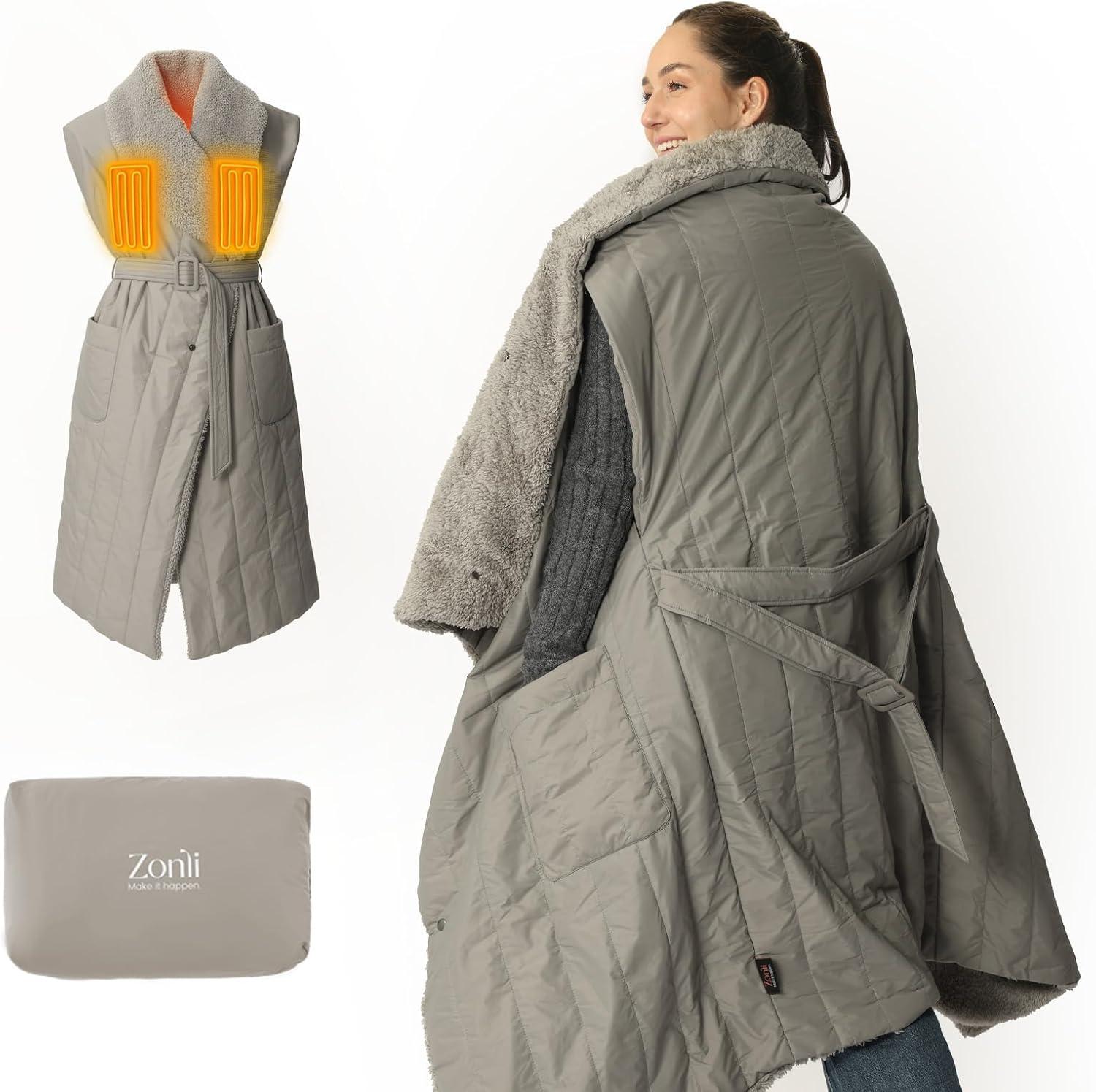 Zonli Heated Blanket Battery Operated for Outdoor Use – Fashionable, Cordless, Portable Electric Blanket with Rechargeable 10000mAh Battery – Wearable Heated Vest for Women,Black(Gray)