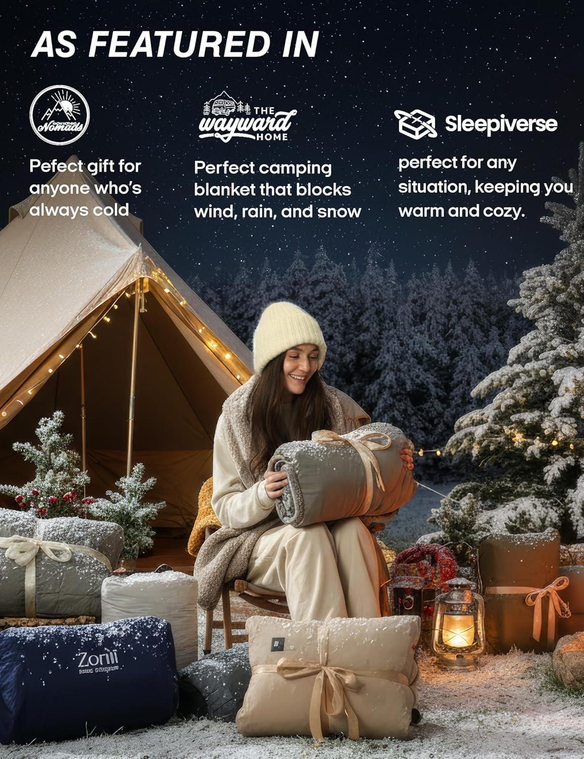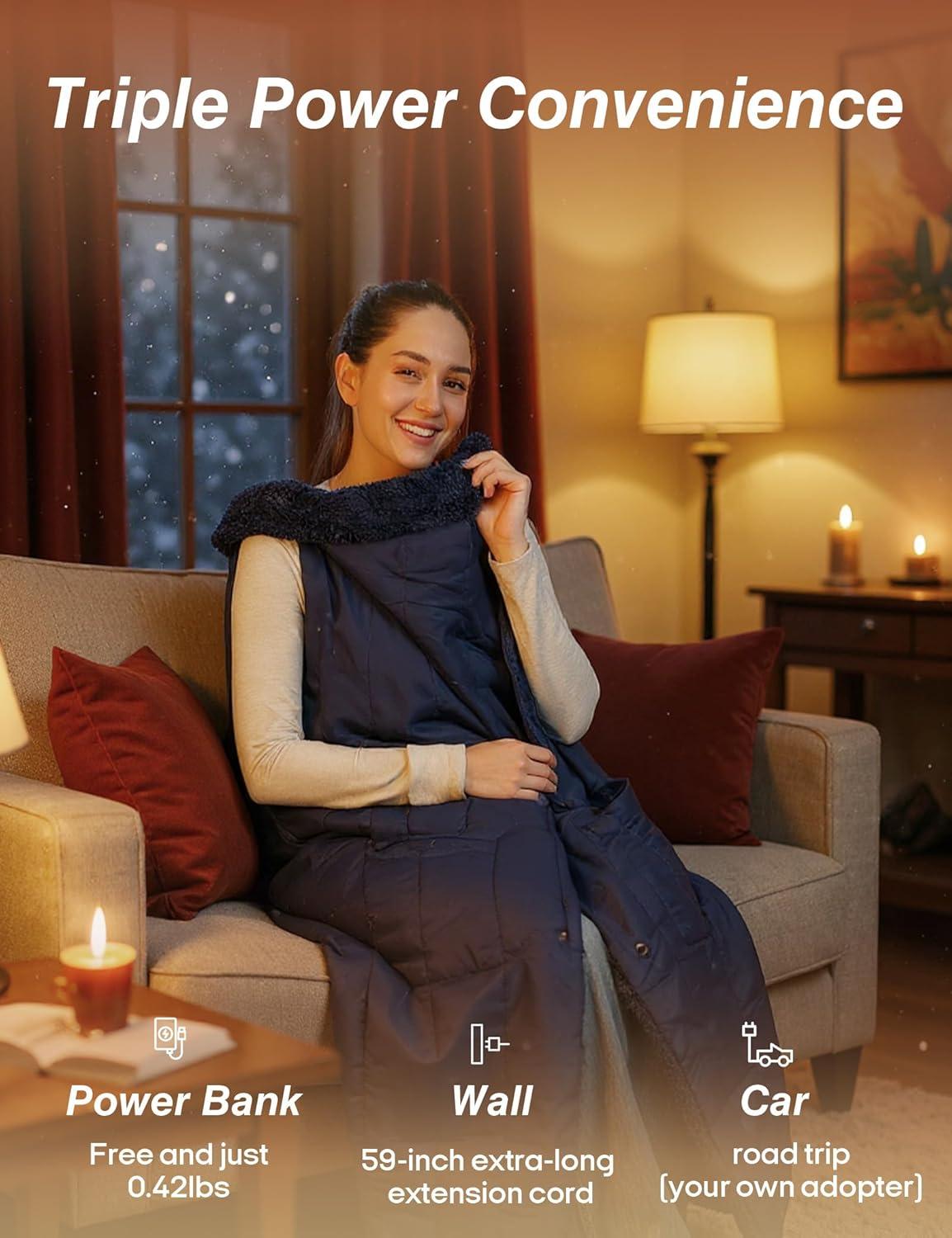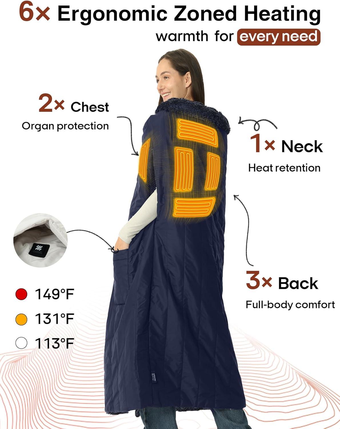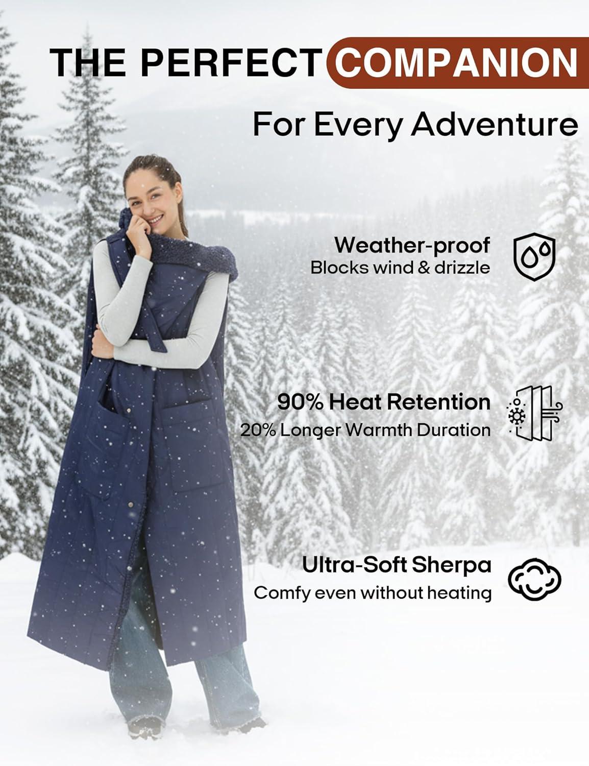 【Overheat Protection & Ideal Gift Choice】:To ensure safety, this rechargeable heated blanket is equipped with a 2-hour automatic shut-off function to prevent overheating. Whether you're camping, attending a sports event, hiking, or watching TV or working indoors, this portable heating blanket is the perfect choice. Adjustable sizes accommodate people of all body types, making it a thoughtful Christmas gift for your family. Can't wait to see their surprised expressions!