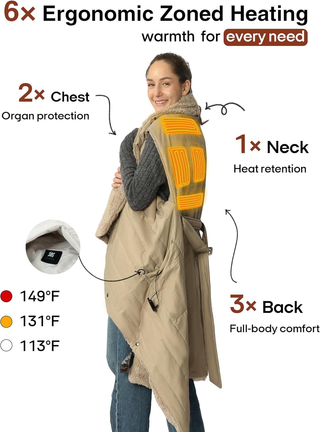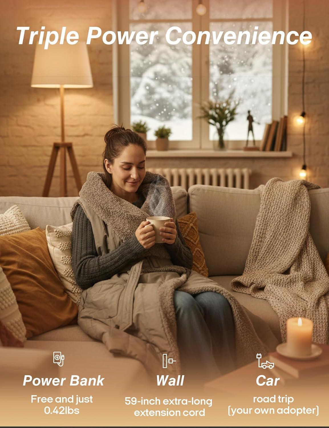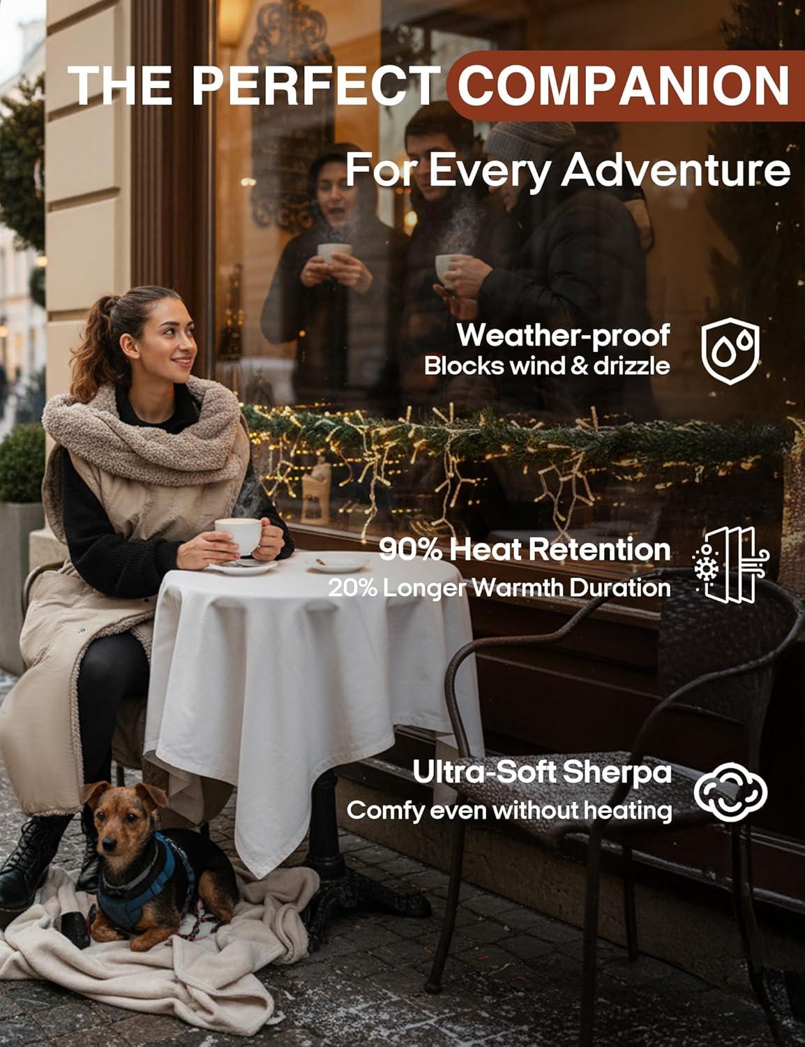 【Overheat Protection & Ideal Gift Choice】:To ensure safety, this rechargeable heated blanket is equipped with a 2-hour automatic shut-off function to prevent overheating. Whether you're camping, attending a sports event, hiking, or watching TV or working indoors, this portable heating blanket is the perfect choice. Adjustable sizes accommodate people of all body types, making it a thoughtful Christmas gift for your family. Can't wait to see their surprised expressions!