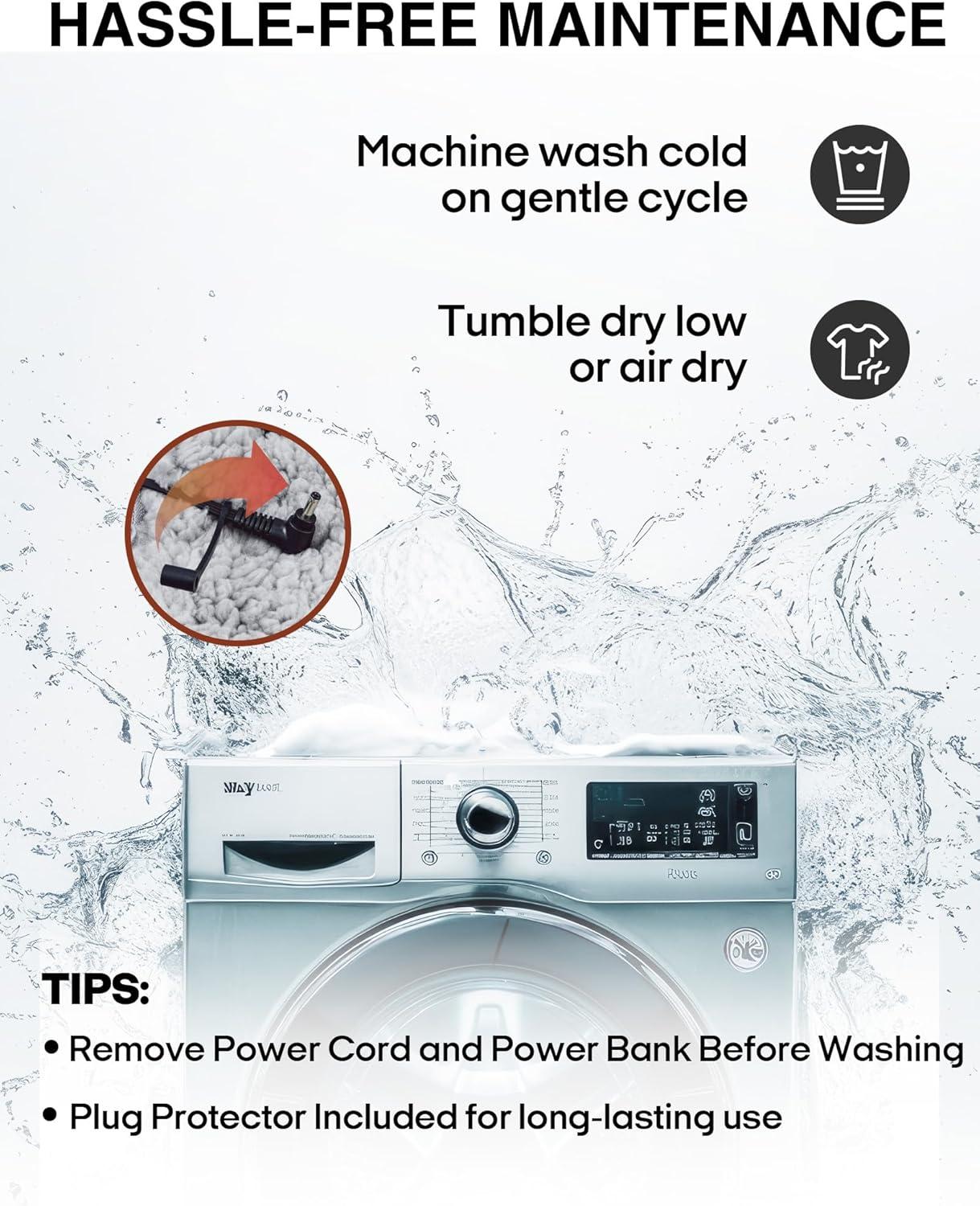 【 Machine Washable and Easy Care 】 – Just unplug the controller and throw it in the washing machine. Wash this electric blanket in a gentle environment, with warm water. Dry with low heat or tumble dry. Attention – do not dry clean. Don't bleach. Don't iron. Do not turn on the power in wet conditions until the heating blanket is completely dry.