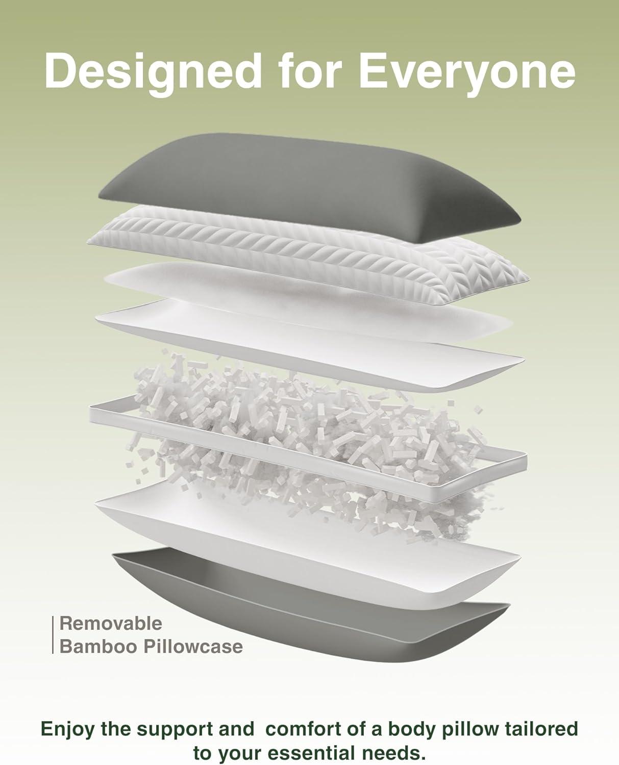 ZonLi Memory Foam Body Pillow for Adults with Removable Pillowcase,Long Pillow for Bed, Ideal for Side Sleepers,20×54 inches,Dark Grey(Green)