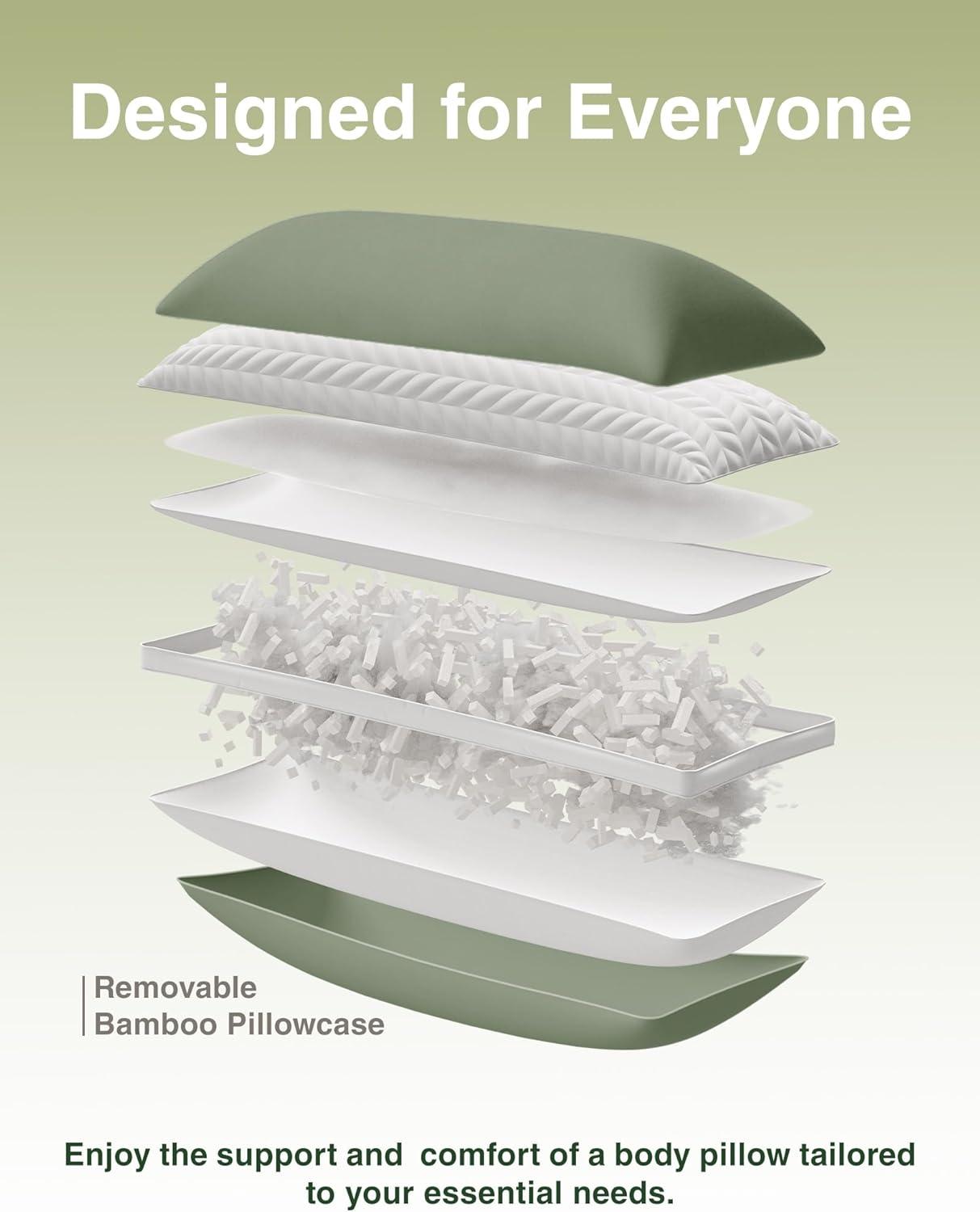 ZonLi Memory Foam Body Pillow for Adults with Removable Pillowcase,Long Pillow for Bed, Ideal for Side Sleepers,20x54 inches,Dark Grey(Green)