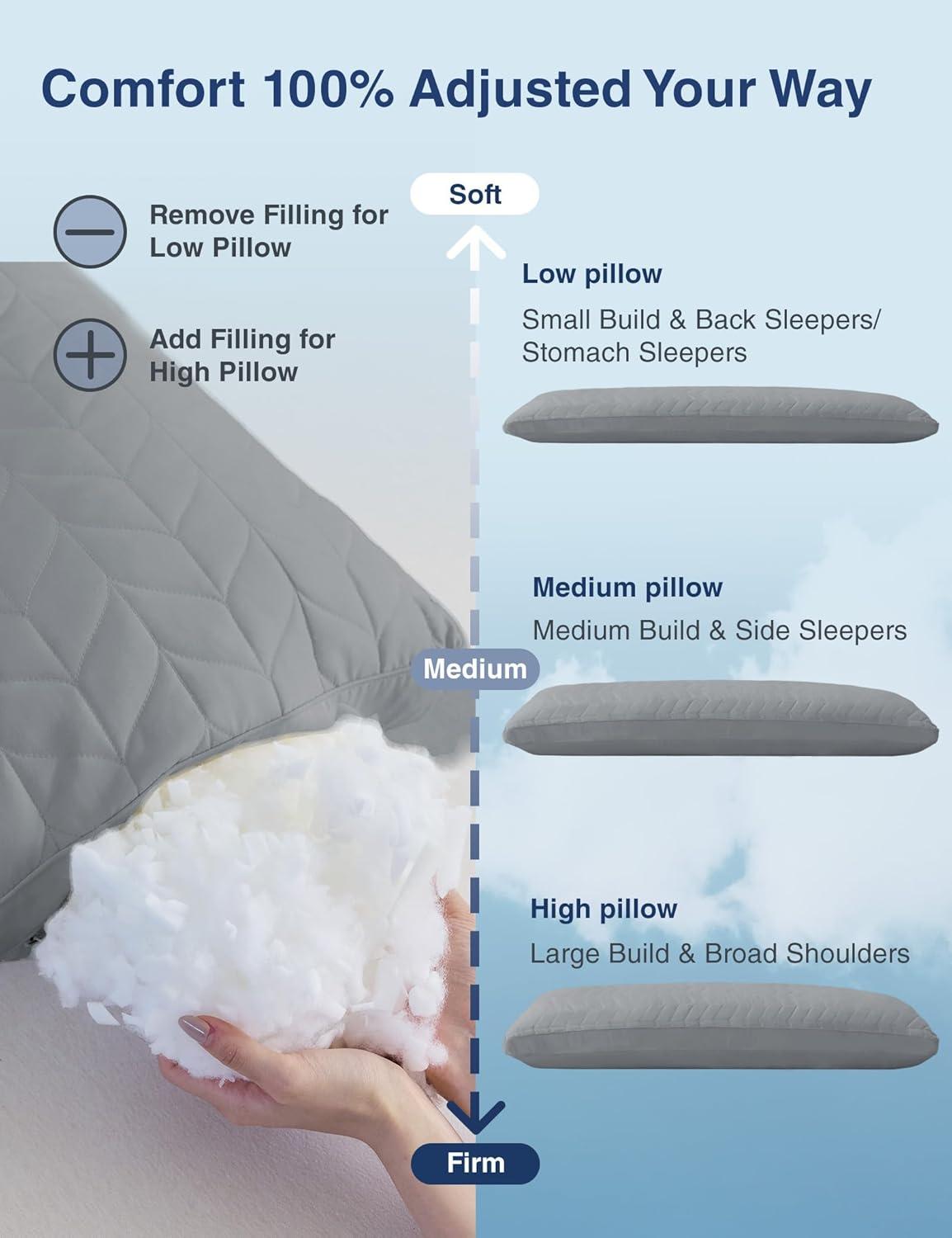 Skin-Friendly & Breathable: Made from a soft, ultra-fine fiber fabric, it delivers a gentle touch that keeps you dry and comfortable throughout the night. A top zipper lets you adjust the pillow’s height and firmness to suit your unique needs.