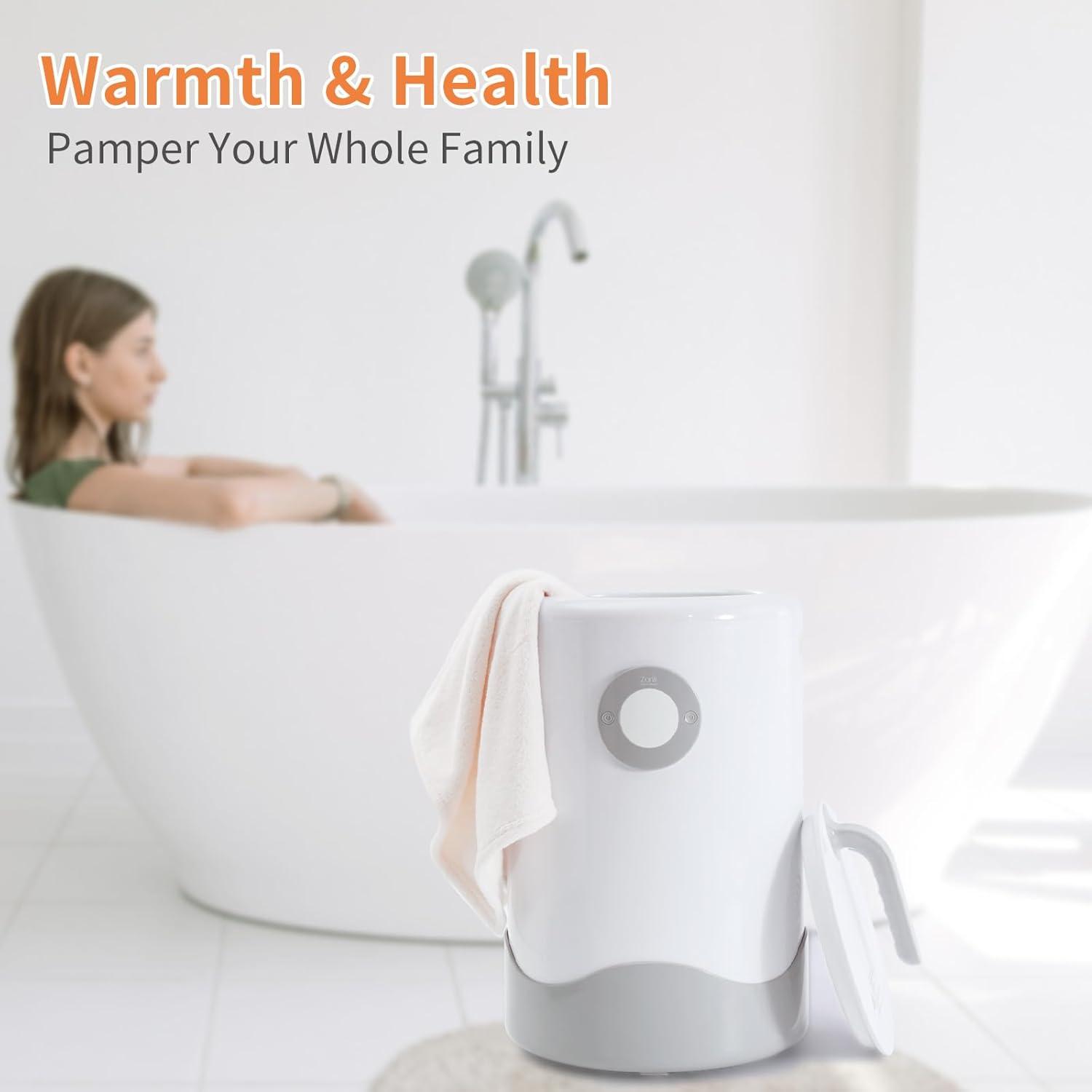 LARGE CAPACITY – The ultra-large insulated plastic towel warmer bucket design accommodates up to two 40’’ x 70’’ oversized bath towels, bathrobes, blankets, PJ’s and more. Dimensions: 12″ (L) x 12″ (W) x 21″ (H) , total 20 L capacity.