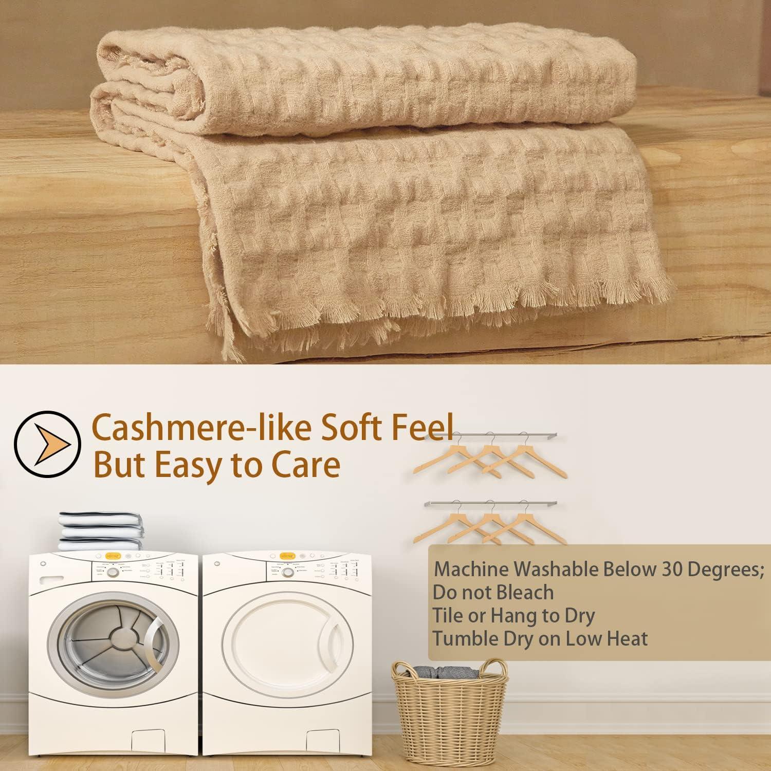 【Care Tips】: Please keep sharp objects away from this throw blanket for couch to prevent it being hooked. Place the weave blanket inside a mesh bag when washing. Machine-wash separately with cold water on a gentle cycle.