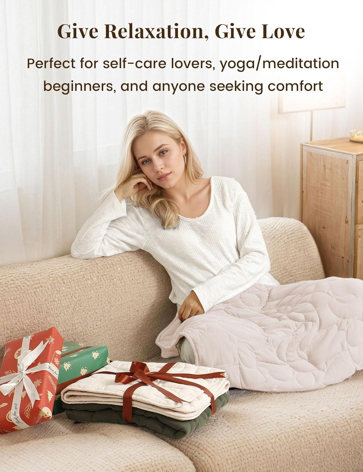 Lightweight & Easy to Carry: Compact and travel-friendly, this lap blanket fits neatly into bags and luggage—ideal for yoga classes, meditation retreats, or daily commutes. The lighter weight makes it a great first step into weighted comfort.
