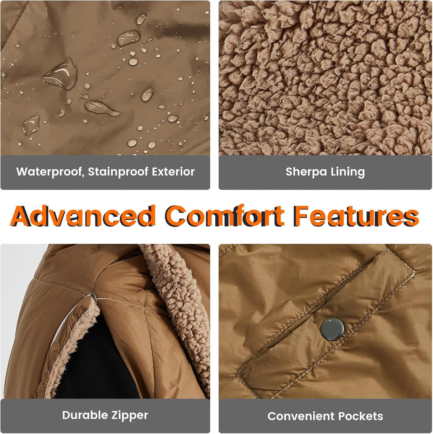 All-Weather Comfort: This blanket combines durability and comfort. Its waterproof exterior shields you from the elements, while the cozy interior keeps you snug on every outing.