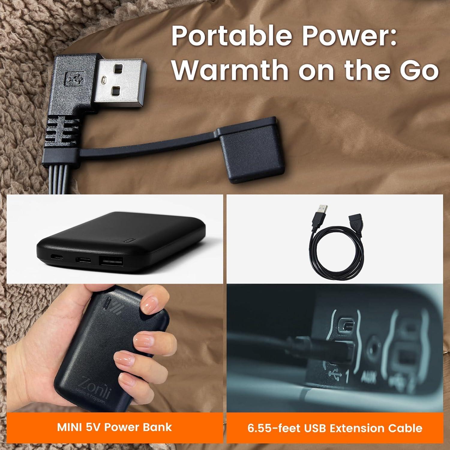 MINI 5K Power Bank: Don't be fooled by its small size – our 5000mAh 5V power bank delivers big performance. Enjoy up to 180 minutes of uninterrupted warmth for your outdoor activities.Additionally, the blanket is compatible with any USB port, ensuring maximum convenience and versatility.